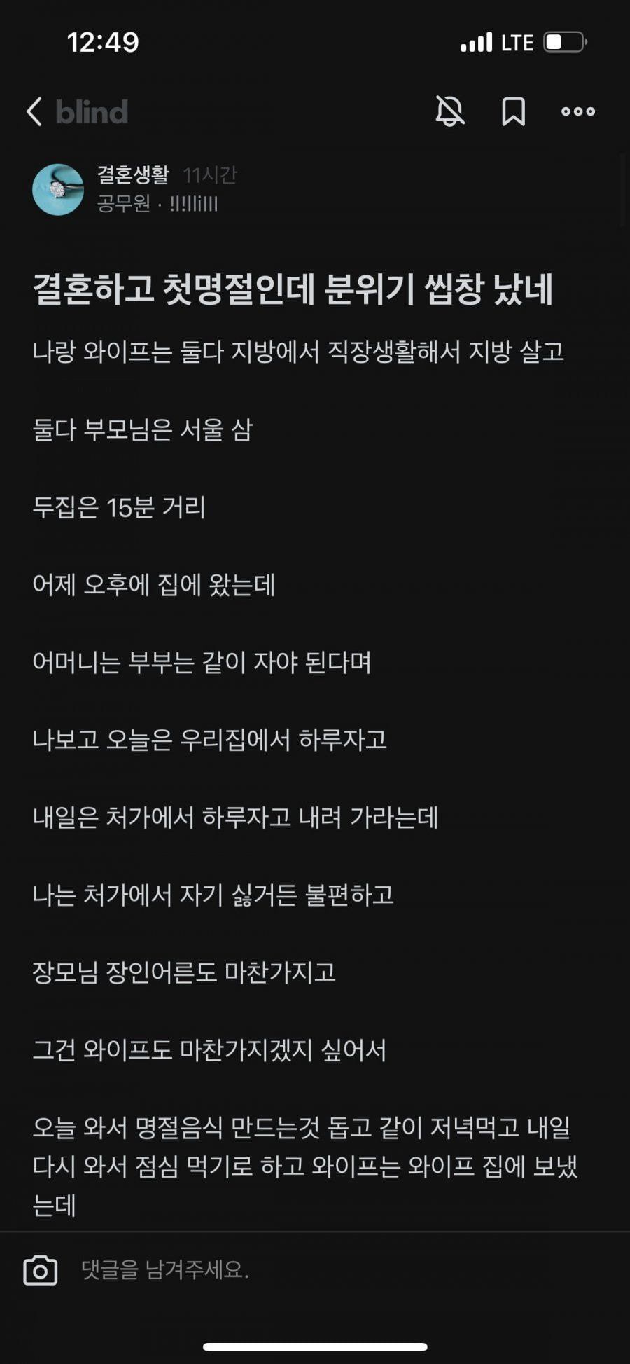 결혼하고 첫 명절인데 집안 분위기 씹창났네