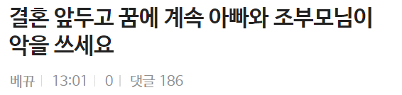 결혼 앞두고 꿈에 계속 아빠와 조부모님이 악을 쓰세요 결혼 앞두고 꿈에 계속 아빠와 조부모님이 악을 쓰세요 ADVERTISEMENT ADVERTISEMENT ADVERTISEMENT ADVERTISEMENT [저작권자 NEWSNACK/ 무단복사, 무단전재 및 재배포 금지 (위반 시 법적조치)]