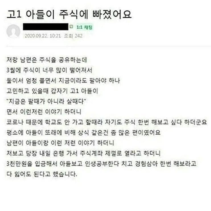 고1 아들이 주식에 빠졌어요 고1 아들이 주식에 빠졌어요 ADVERTISEMENT ADVERTISEMENT [저작권자 NEWSNACK/ 무단복사, 무단전재 및 재배포 금지 (위반 시 법적조치)]