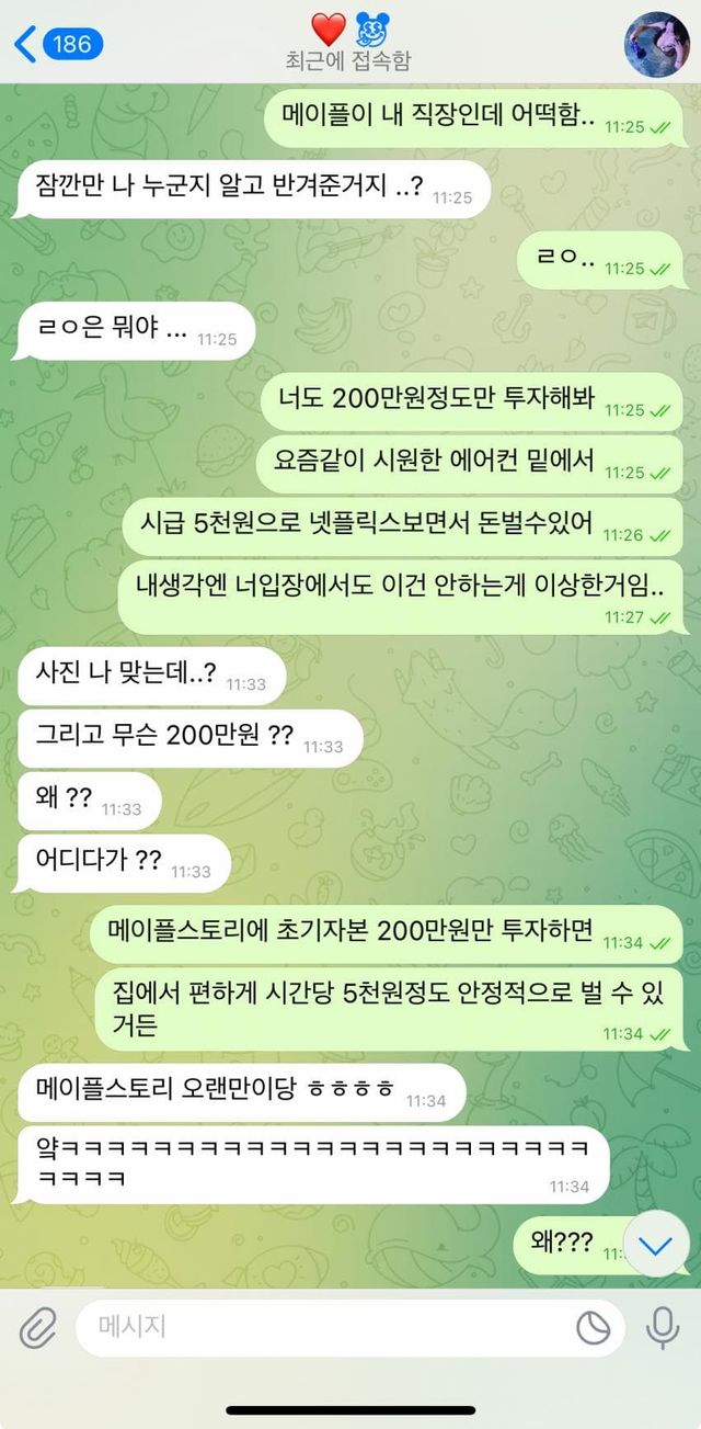 기억에 없는 동창한테 연락왔다 ㄷㄷ 기억에 없는 동창한테 연락왔다 ㄷㄷ ADVERTISEMENT ADVERTISEMENT ADVERTISEMENT ADVERTISEMENT 오랜만에 반가워서 나만 알기 너무 아까운 정보 흘렸더니 반응이 좋음 ㅇㅇ.. 물론 내 이름은 이지훈이 아니긴 한데 프사보니까 이지훈을 대신해서 연락하고싶어졌음 ㅇㅇ ADVERTISEMENT 얘가 메이플보다 더 좋은 투자처가 있다해서 신용카드대출이랑 휴대폰대출 풀로 땡겨서 돈 벌고 에테 22성 전부위로 맞출생각에 신나서 히죽히죽대면서 오랜만에 글쓴다 ㄹㅇ..