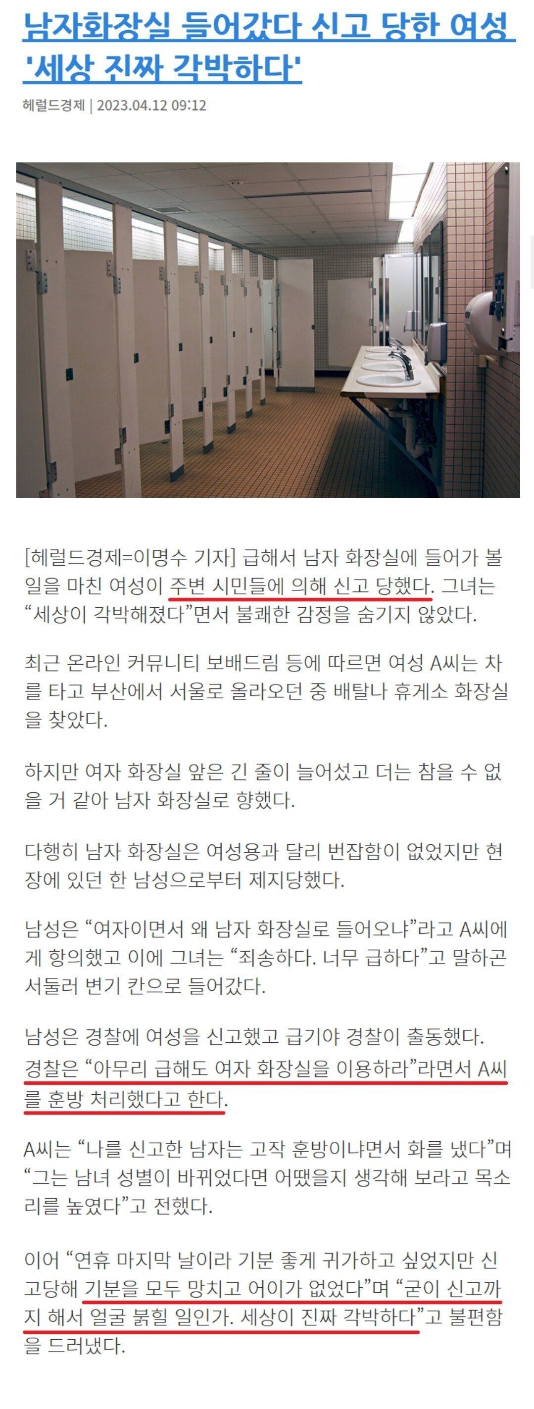 남자화장실 들어갔다가 신고 당한 여자