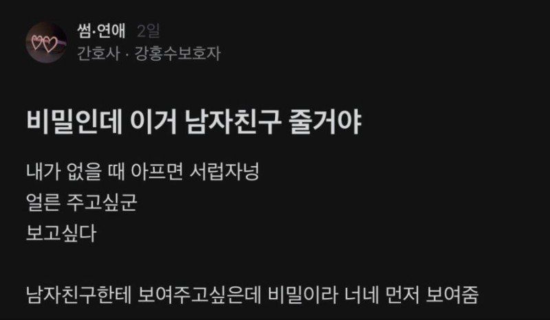 남친에게 줄 비밀선물을 자랑하는 간호사녀