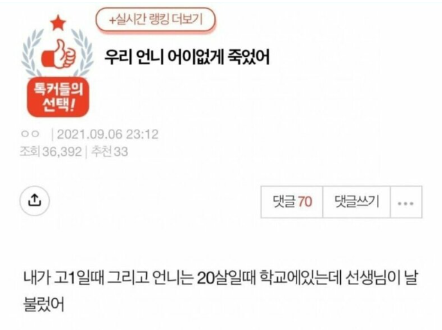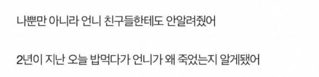 너무 어이없게 세상을 떠난 언니..