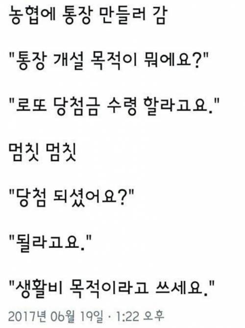 농협에 통장 만들러 감