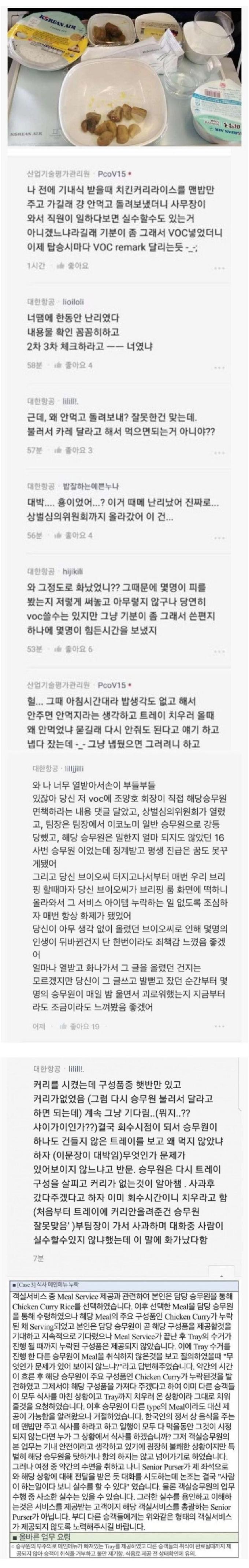 대한항공 비행기 기내식 레전드 실화