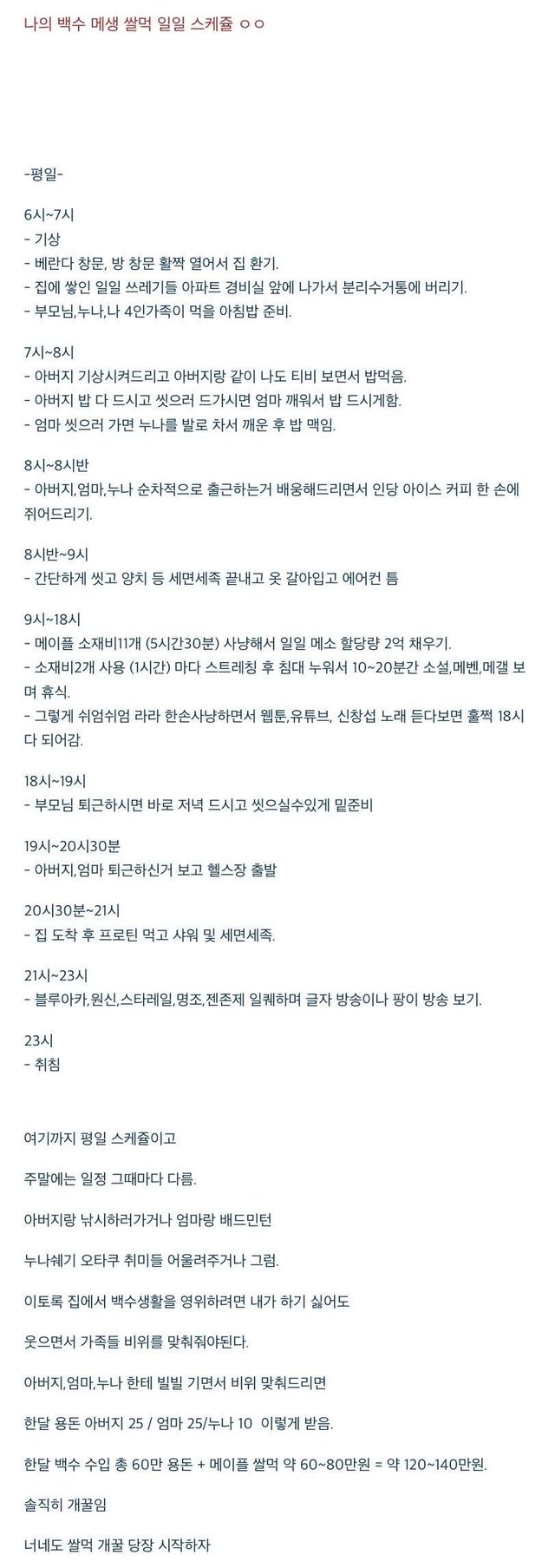 부지런한 백수 ㄷㄷㄷ