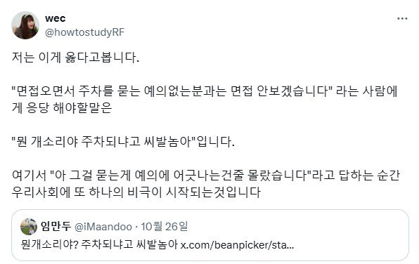 면접관한테 주차 되냐고 물어보다가 면접 취소 당함 면접관한테 주차 되냐고 물어보다가 면접 취소 당함 ADVERTISEMENT ADVERTISEMENT [저작권자 NEWSNACK/ 무단복사, 무단전재 및 재배포 금지 (위반 시 법적조치)]