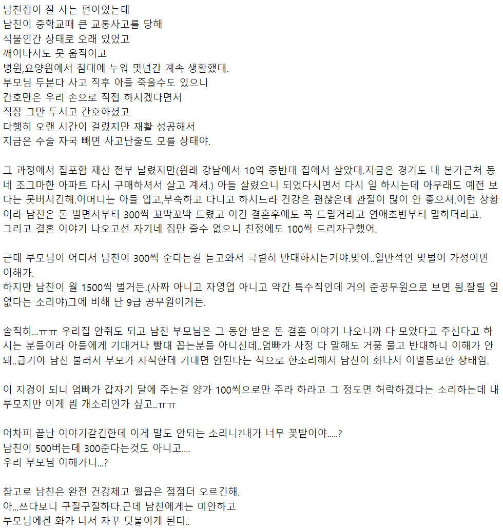 남친 본가에 월 300씩 주는걸 반대하는 부모님 때문에 이별통보 받았어 남친 본가에 월 300씩 주는걸 반대하는 부모님 때문에 이별통보 받았어 ADVERTISEMENT ADVERTISEMENT ADVERTISEMENT ADVERTISEMENT [저작권자 NEWSNACK/ 무단복사, 무단전재 및 재배포 금지 (위반 시 법적조치)]