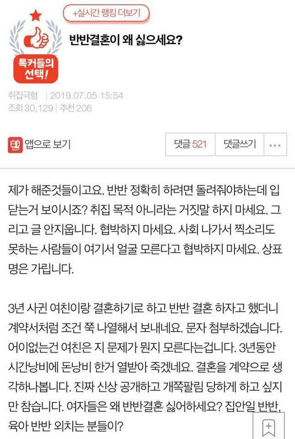 누군 남자 욕먹이려는 판춘문예라고 욕하고