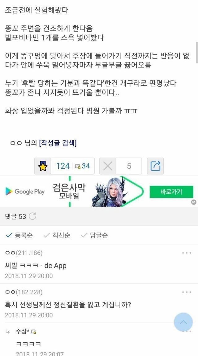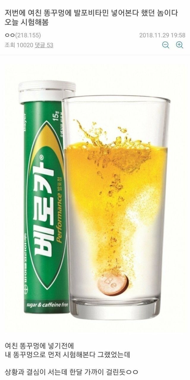 발포비타민을 똥꼬에 양보한 남자..jpg 발포비타민을 똥꼬에 양보한 남자..jpg ADVERTISEMENT ADVERTISEMENT [저작권자 NEWSNACK/ 무단복사, 무단전재 및 재배포 금지 (위반 시 법적조치)]