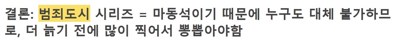 범죄도시 시리즈를 급하게 계속 찍는 충격적인 이유 범죄도시 시리즈를 급하게 계속 찍는 충격적인 이유 ADVERTISEMENT ADVERTISEMENT ADVERTISEMENT ADVERTISEMENT ADVERTISEMENT ADVERTISEMENT [저작권자 NEWSNACK/ 무단복사, 무단전재 및 재배포 금지 (위반 시 법적조치)]