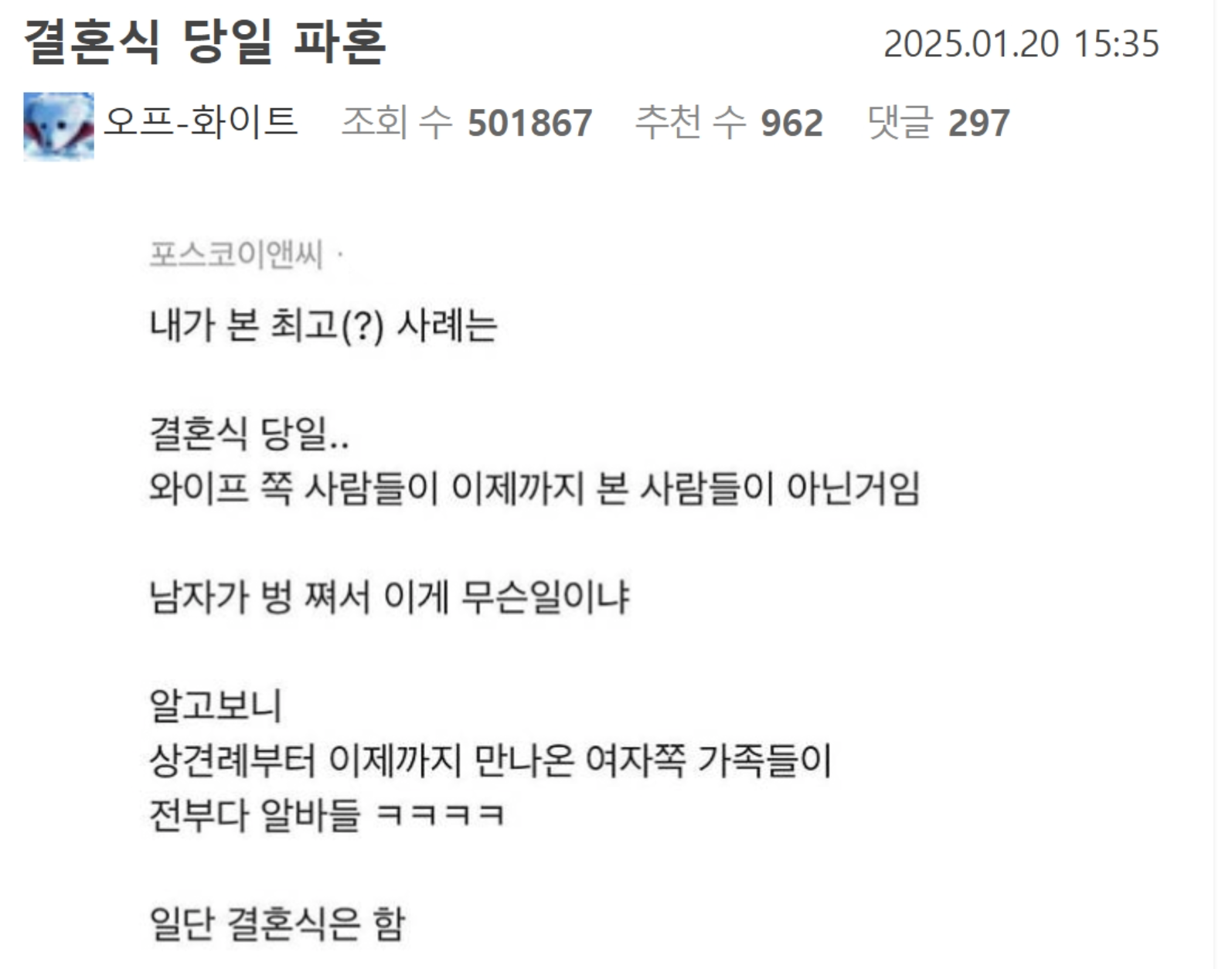 블라인드에서 난리난 결혼식 당일 파혼썰..속인 이유가.. 블라인드에서 난리난 결혼식 당일 파혼썰..속인 이유가.. ADVERTISEMENT ADVERTISEMENT ADVERTISEMENT [저작권자 NEWSNACK/ 무단복사, 무단전재 및 재배포 금지 (위반 시 법적조치)]