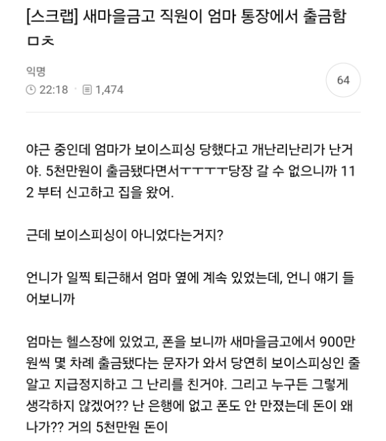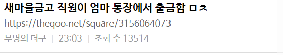 새마을금고 직원이 엄마 통장에서 출금함 ㅁㅊ;; 새마을금고 직원이 엄마 통장에서 출금함 ㅁㅊ;; ADVERTISEMENT ADVERTISEMENT ADVERTISEMENT ADVERTISEMENT [저작권자 NEWSNACK/ 무단복사, 무단전재 및 재배포 금지 (위반 시 법적조치)]