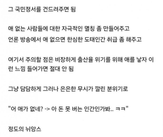어느 디시인이 고안한 한국식 저출산 대책 레전드