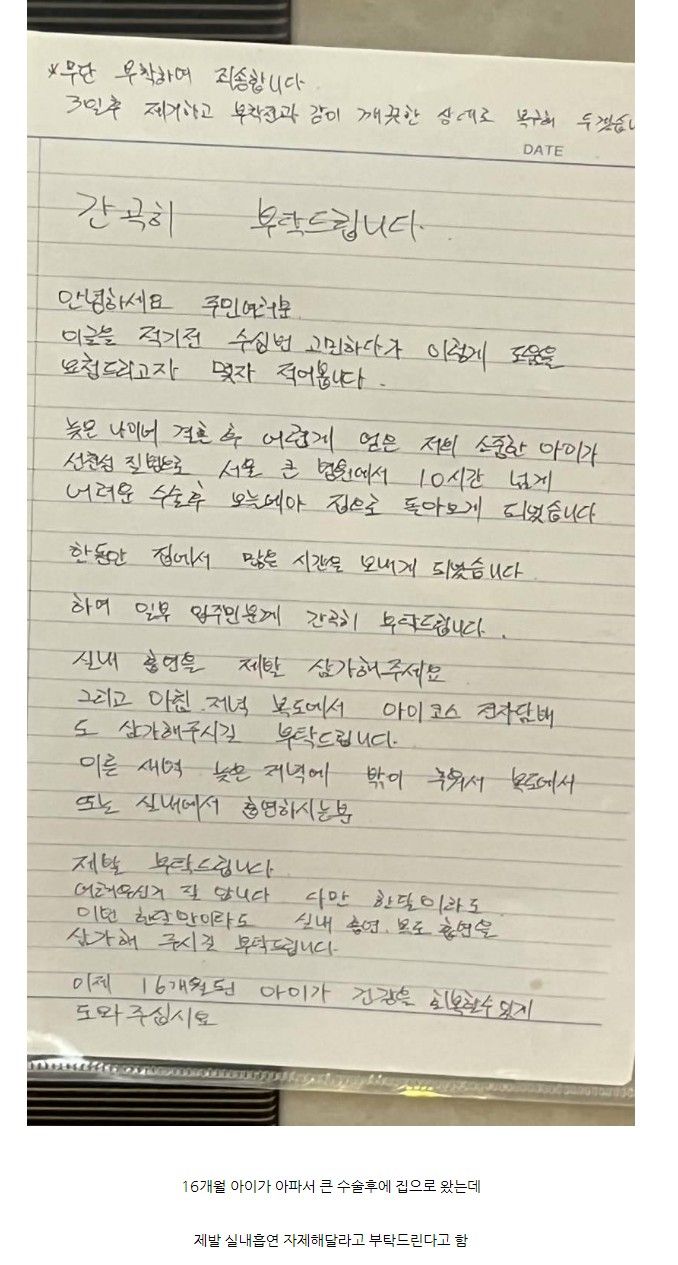 어느 아파트에 아빠가 간곡하게 붙여놓은 호소문 ㄷㄷ 어느 아파트에 아빠가 간곡하게 붙여놓은 호소문 ㄷㄷ ADVERTISEMENT ADVERTISEMENT [저작권자 NEWSNACK/ 무단복사, 무단전재 및 재배포 금지 (위반 시 법적조치)]