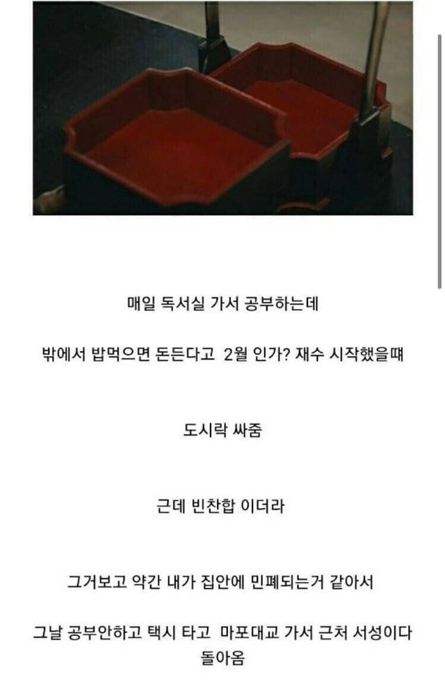 엄마한테 빈 도시락을 받은 재수생