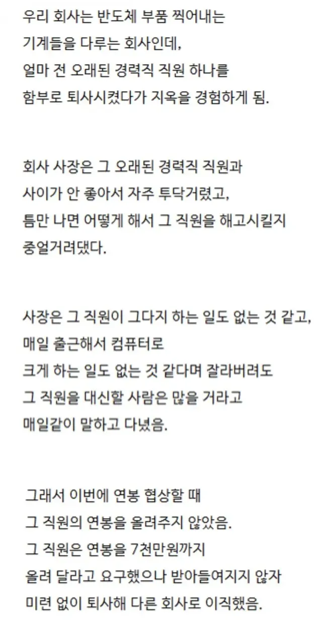 오래된 경력직 직원이 자르면 지옥시작..,,