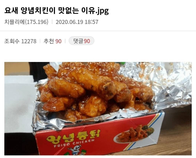 요새 양념치킨이 맛없는 이유