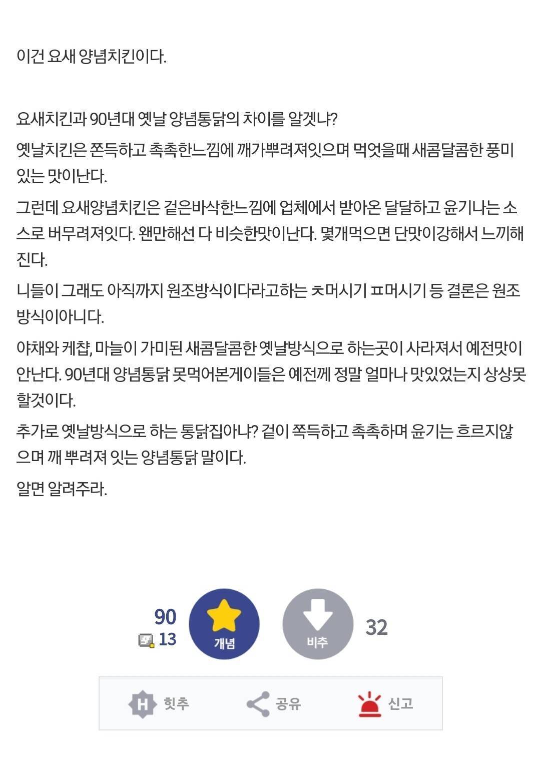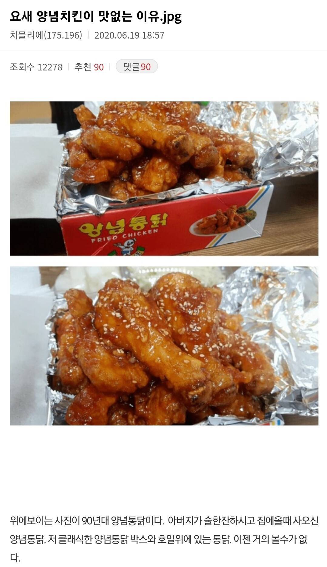 요새 양념치킨이 맛없는 이유