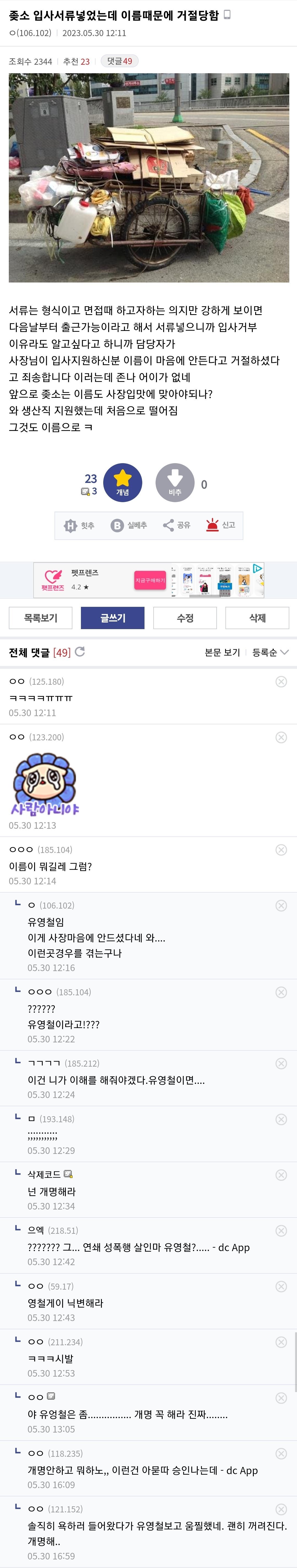 이름 때문에 중소기업 채용 거부된 디시인 이름 때문에 중소기업 채용 거부된 디시인 ADVERTISEMENT ADVERTISEMENT [저작권자 NEWSNACK/ 무단복사, 무단전재 및 재배포 금지 (위반 시 법적조치)]