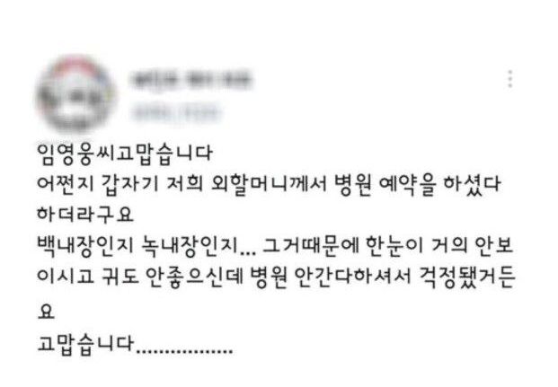 “임영웅씨, 건강검진 받으라 한마디만 해주소” .jpg “임영웅씨, 건강검진 받으라 한마디만 해주소” .jpg ADVERTISEMENT ADVERTISEMENT [저작권자 NEWSNACK/ 무단복사, 무단전재 및 재배포 금지 (위반 시 법적조치)]