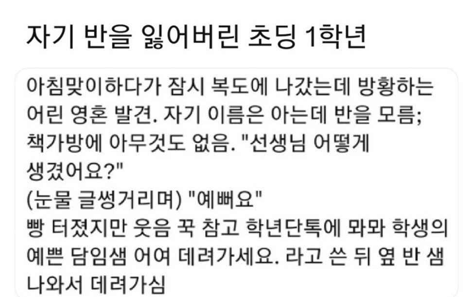 자기 반을 잃어버린 어느 초등학생 자기 반을 잃어버린 어느 초등학생 ADVERTISEMENT ADVERTISEMENT [저작권자 NEWSNACK/ 무단복사, 무단전재 및 재배포 금지 (위반 시 법적조치)]
