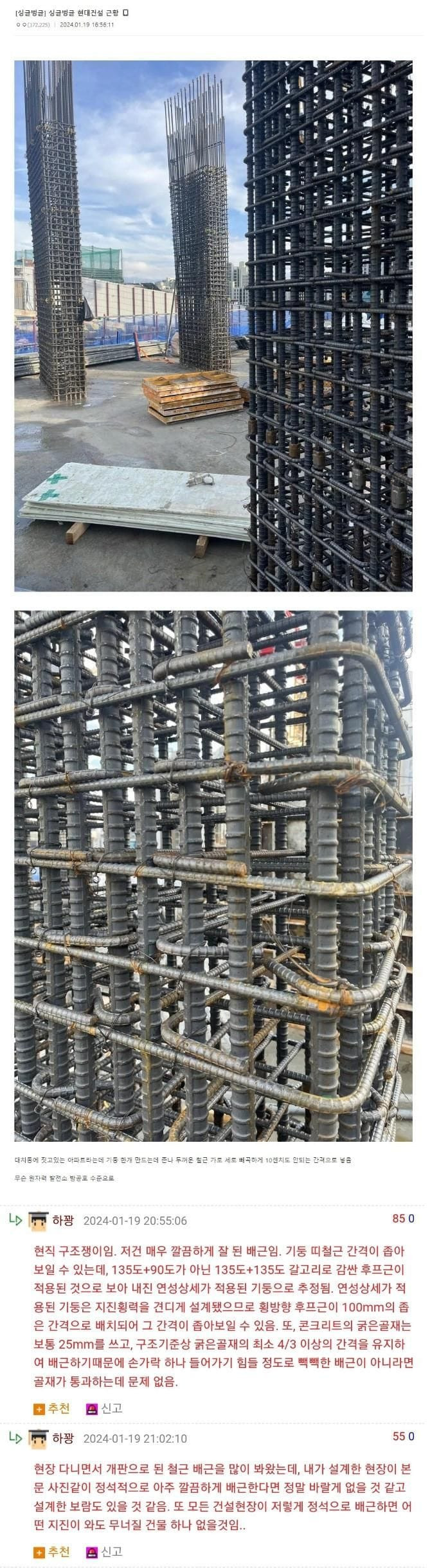 정석으로 들어간 건물 철근 모습 ㄷㄷ