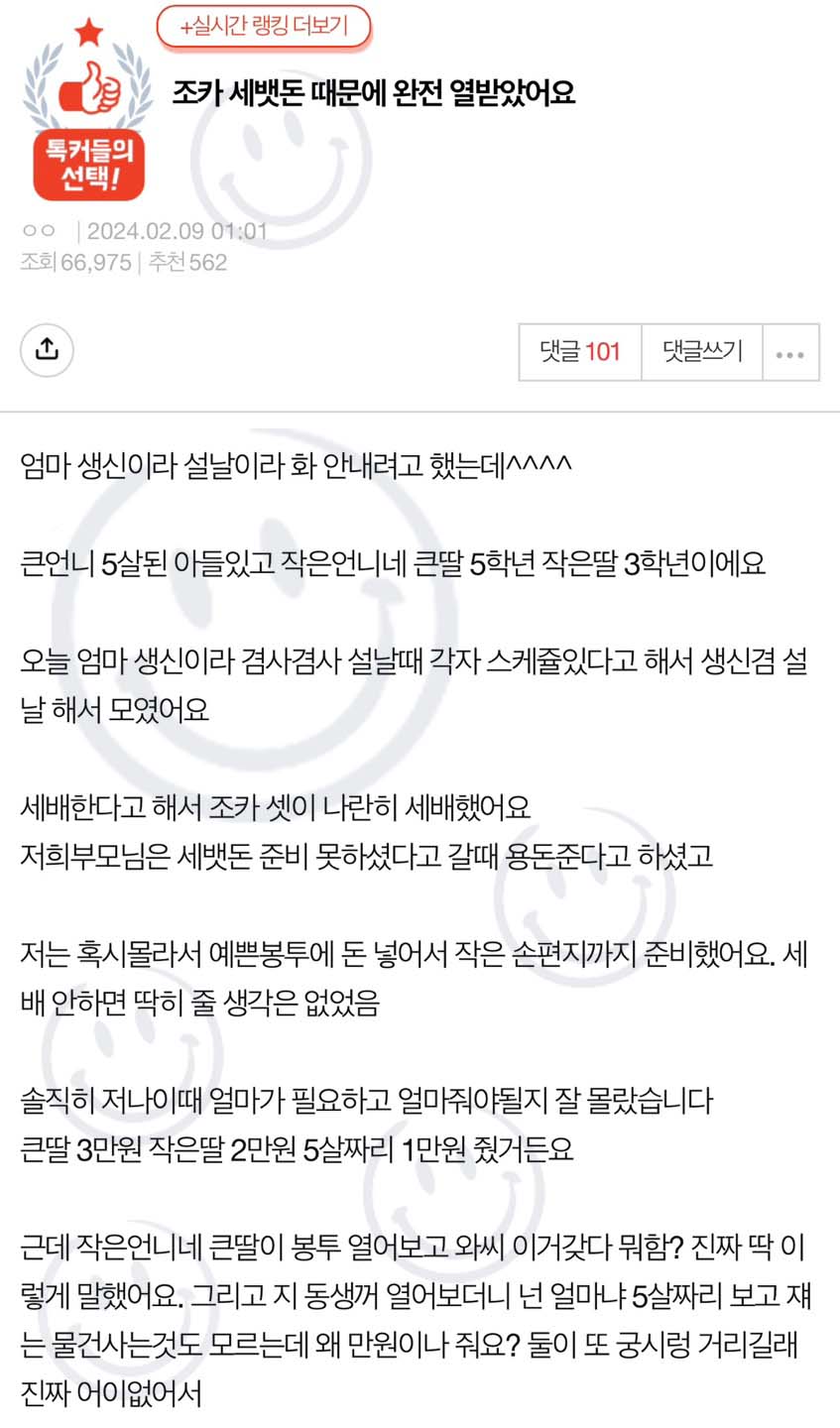 조카 세뱃돈 때문에 완전 열받았어요