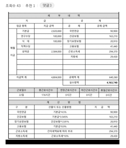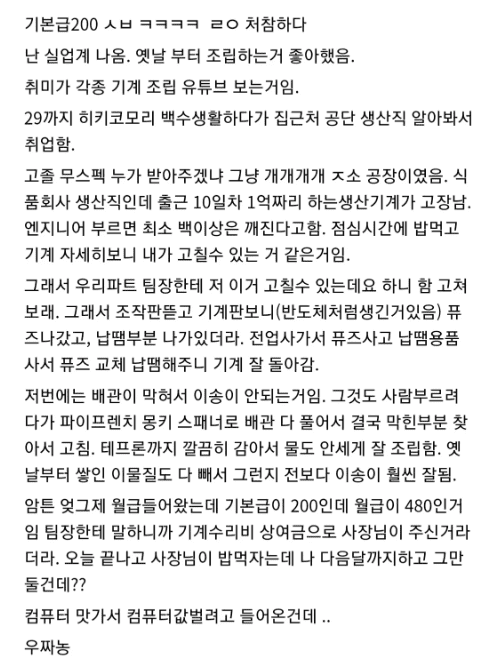 중소 생산직 첫월급 및 후기(+반전)
