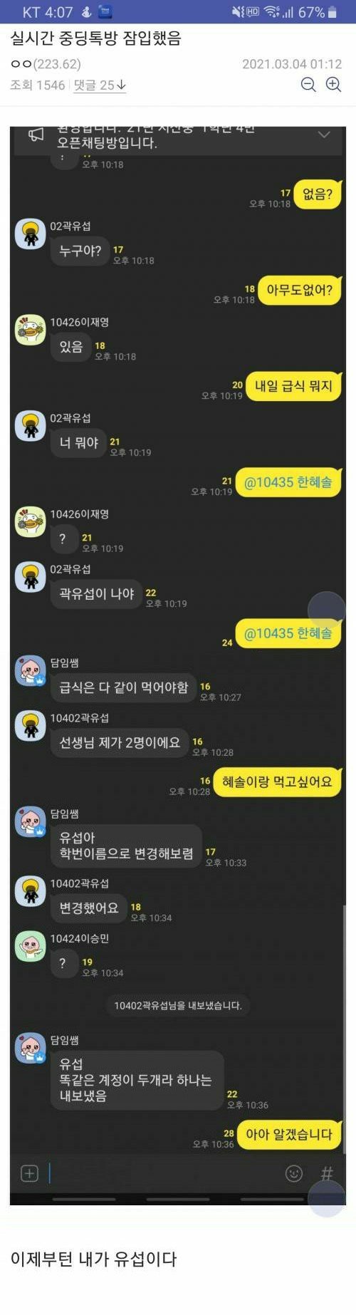 중학생 단톡방에 잠입한 디시인