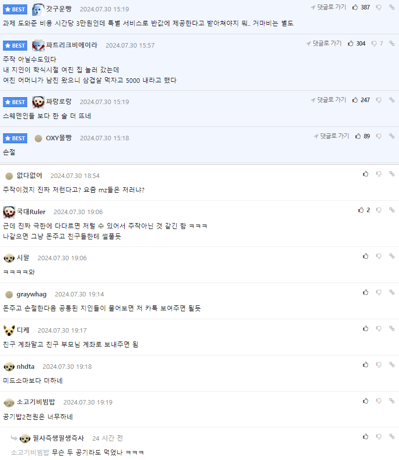 친구집에서 밥 먹었는데 밥값 내라는 친구