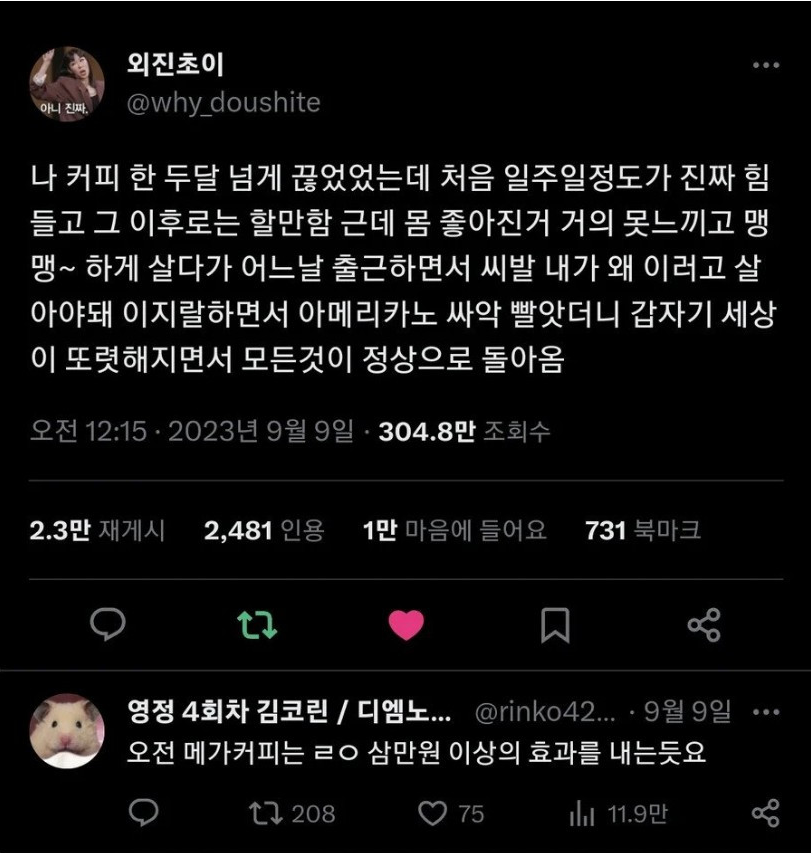 커피 두 달 끊은 직장인에게 일어난 변화 커피 두 달 끊은 직장인에게 일어난 변화 ADVERTISEMENT ADVERTISEMENT [저작권자 NEWSNACK/ 무단복사, 무단전재 및 재배포 금지 (위반 시 법적조치)]