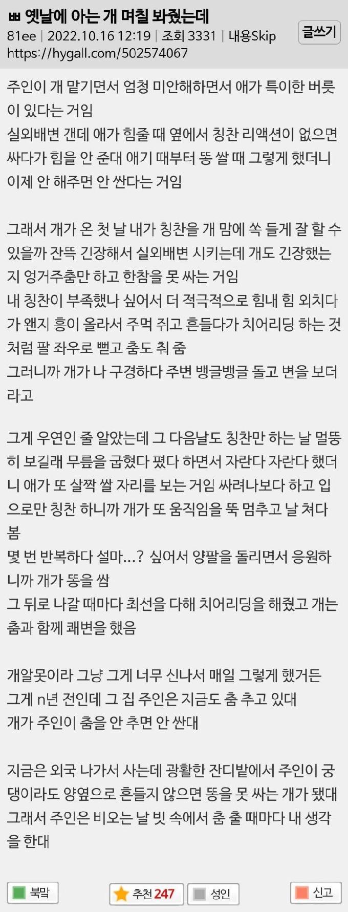 아는 개 며칠 봐줬다가 아직도 원망듣는 사람 아는 개 며칠 봐줬다가 아직도 원망듣는 사람 ADVERTISEMENT ADVERTISEMENT [저작권자 NEWSNACK/ 무단복사, 무단전재 및 재배포 금지 (위반 시 법적조치)]