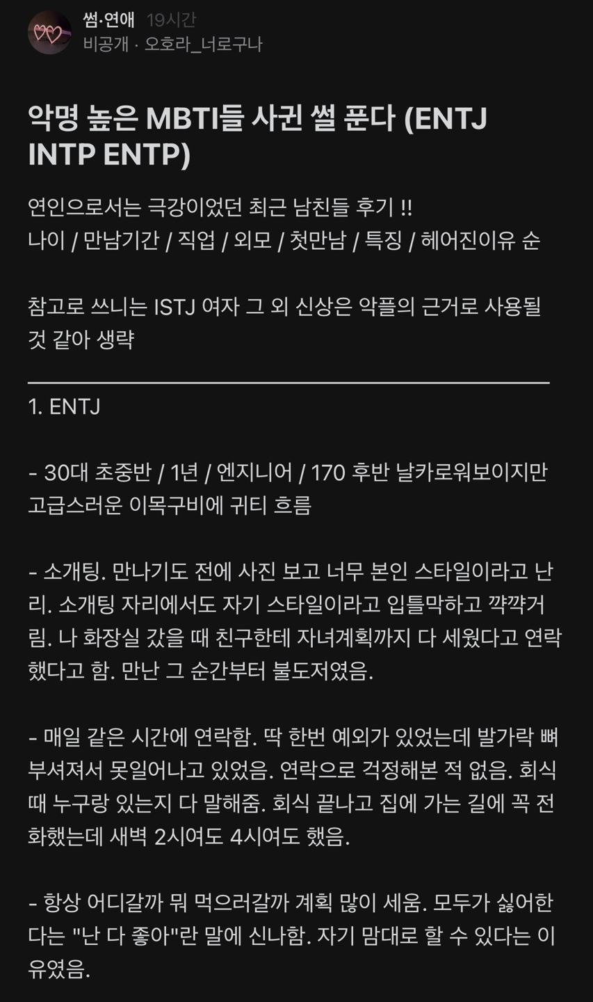 악명 높은 mbti 사귄 썰 푼다 (ENTJ INTP ENTP) 악명 높은 mbti 사귄 썰 푼다 (ENTJ INTP ENTP) ADVERTISEMENT ADVERTISEMENT ADVERTISEMENT ADVERTISEMENT ADVERTISEMENT ADVERTISEMENT [저작권자 NEWSNACK/ 무단복사, 무단전재 및 재배포 금지 (위반 시 법적조치)]