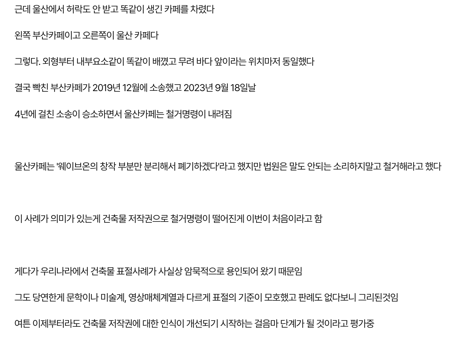 어느 부산 카페의 건축물 저작권 분쟁의 최후ㄷㄷ 어느 부산 카페의 건축물 저작권 분쟁의 최후ㄷㄷ ADVERTISEMENT ADVERTISEMENT ADVERTISEMENT ADVERTISEMENT [저작권자 NEWSNACK/ 무단복사, 무단전재 및 재배포 금지 (위반 시 법적조치)]